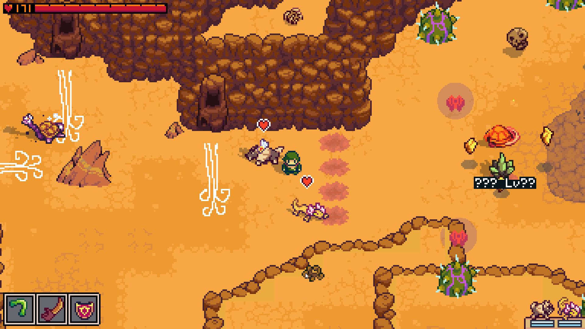 The artwork is bright and reminiscent of an expensive-looking Game Boy game. The sound features weird noises and melodies that remind you of early Nintendo console games. The sound fits the game's mood, whether you are exploring an unfamiliar location or tending to your garden. I enjoyed playing Creature Keeper because you can play at your own pace. You don't need to rush through the plot or catch all the creatures immediately. You can do so leisurely, explore, and simply view the view. I tended to stray from the main path because I wished to discover what new friends would join me back in my pocket garden. (And me being me, I looked for all the cute creatures first.) Filling up your garden with those tiny creatures you became acquainted with throughout your journey is wonderful.